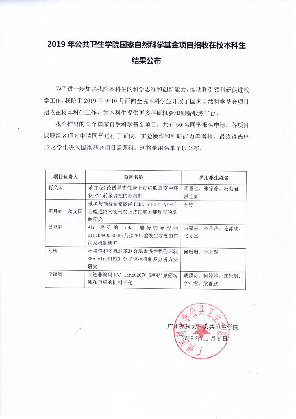 2019年博彩网站推荐 国家自然科学基金项目招收在校本科生结果公布