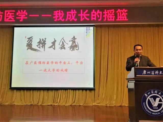 随后,蒋院长上台给观众们分享了自己从事预防医学的经历,蒋院长从自身出发,讲述了他在大学学习的经验,从被否定到肯定的入党经过,毕业之后的职业发展选择,不断深造学业的历程。此外,他更深切的谈到了他在迷茫中白白浪费五年时光的遗憾。紧接着,蒋院长详细讲述了他在科研方面上的突出成就,为广医辛苦耕耘的奋斗历程。蒋院长更勉励每一个广医人必须要有拼搏向上的精神,不能自我满足,而要比他人付出双倍的努力。