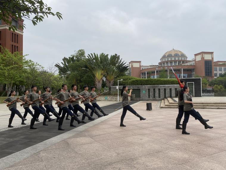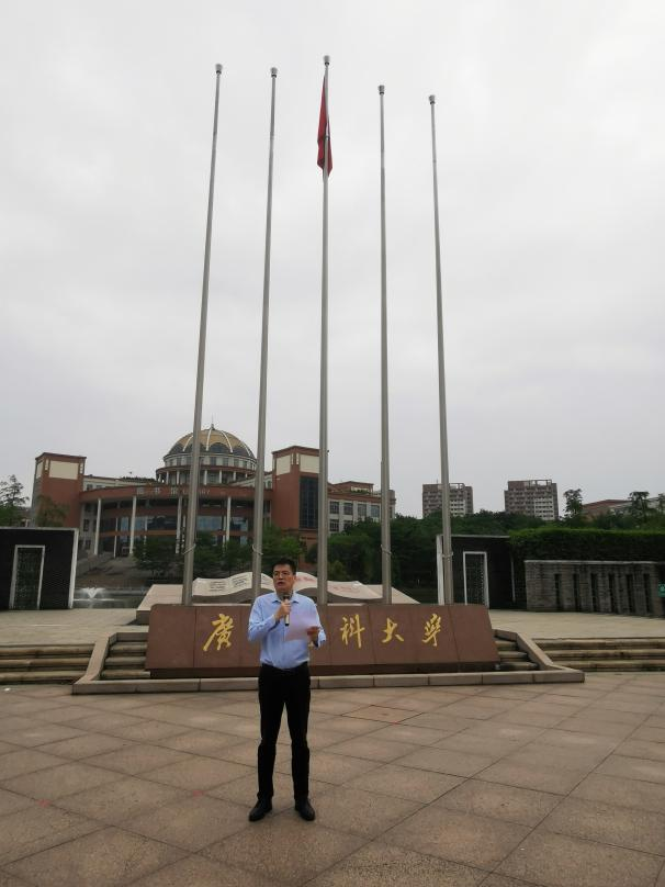 4月24日早上,博彩网站推荐 在番禺校区国旗广场隆重举行本学期升国旗仪式。仪式由博彩网站推荐 党委刘宇珊副书记主持。