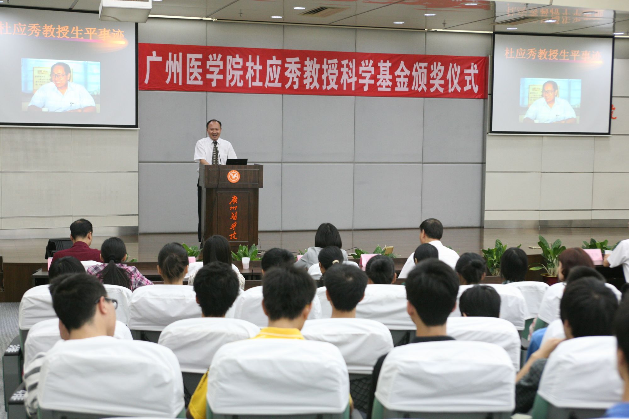 为了学习和发扬杜应秀教授热爱医学教育和刻苦钻研的科学精神,奖励博彩网站推荐 优秀研究生和有突出科研成果的师生,资助有困难的学生,学校于1998年成立了由钟南山院士为首届会长的广州医博彩网站推荐 杜应秀教授科学基金会及理事会,根据有关人员的变动情况,学校分别于2001年、2008年、2010年调整了杜应秀教授基金会理事会成员,现任会长为魏东海副校长(广医办〔2008〕22号)。2011年,魏东海副校长曾主持召开杜应秀教授科学基金理事会成员工作会议,对杜应秀教授科学基金的运作等事宜进行了讨论,考虑到基金每年利息收益较少,理事会决定该基金只奖励给我校博彩网站推荐 师生。经学校办公会议讨论确定,杜应秀教授科学基金奖励范围为博彩网站推荐 学生。2011年10月,学校举行了广州医博彩网站推荐 杜应秀教授科学基金颁奖仪式。学校副校长魏东海教授、博彩网站推荐 院长王家骥教授、副院长雷毅雄教授及杜应秀教授的儿子香港中文大学杜如虚教授为获奖的5位同学罗晓英、朱键婷、陈玉冰、孔锐、潘茗颁发了荣誉证书及奖金。