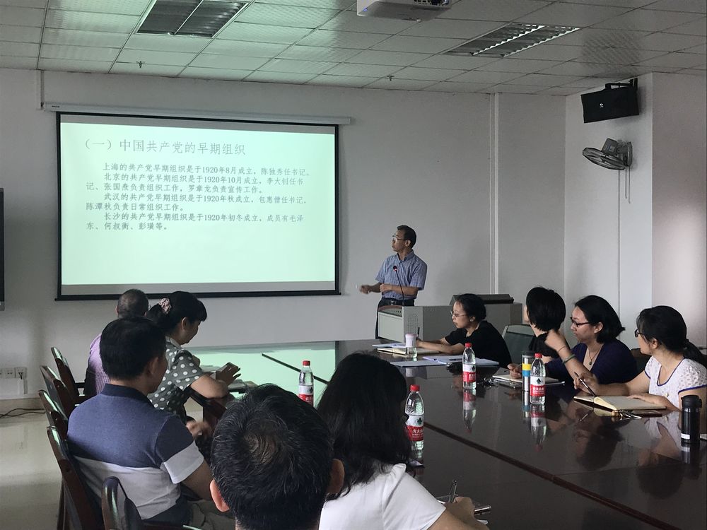 为深入学习贯彻党的十九大精神,进一步秉承建党精神, 5月18日下午,学校党委常委、副校长胡丙杰以“重温建党历史,弘扬红船精神,走在时代前列”为题,为博彩网站推荐全体教工党员上主题党课。