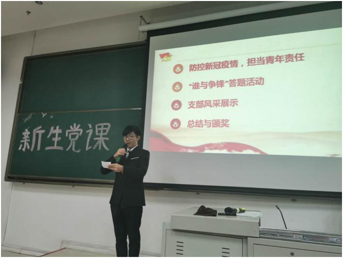 本次活动通过党课知识和防疫知识问答、抗疫见闻分享、入党流程介绍和学生党支部介绍等四个环节让2020级新生对党章党规有了进一步了解,对新冠疫情防控知识有了更深入的了解,对党和政府以及全国人民在抗疫期间付出的艰巨努力和取得的成效有了更深刻的认知。
