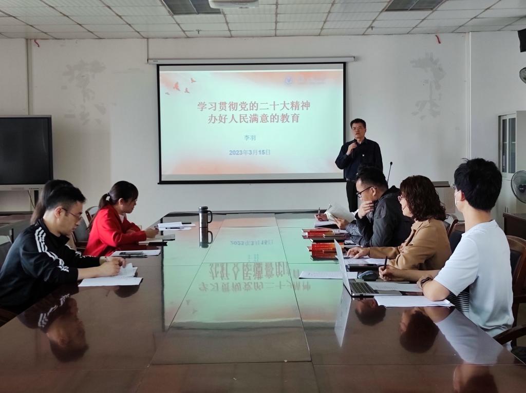 2023年3月15日下午,博彩网站推荐党委书记李羽同志以“学习贯彻党的二十大精神,办好人民满意的教育”为题,为教工第三支部党员讲授学习贯彻党的二十大精神专题党课。