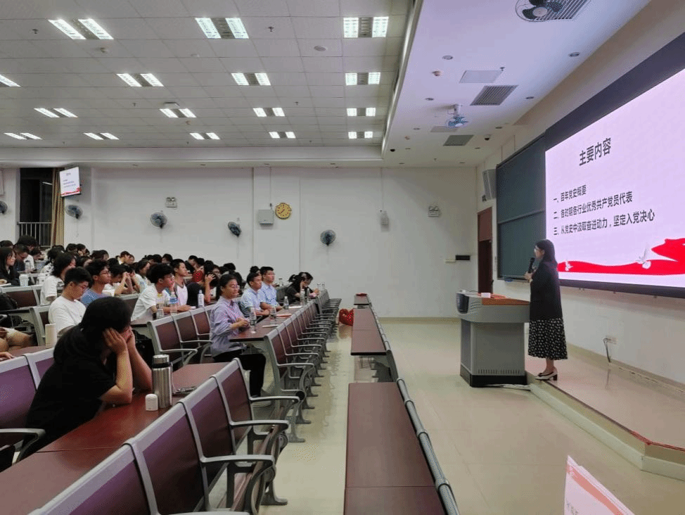 刘宇珊副书记随后以“从党史中汲取奋进力量,坚定入党决心”为题讲授新生党课。她带领新生重温了党的百年征程四个历史阶段中党的主要任务和取得的各项主要成就,介绍了不同时期优秀党员代表事迹,鼓励新生向优秀党员学习,积极向党组织靠拢;同时为新生介绍了党的章程和党员发展细则,明确了入党流程。