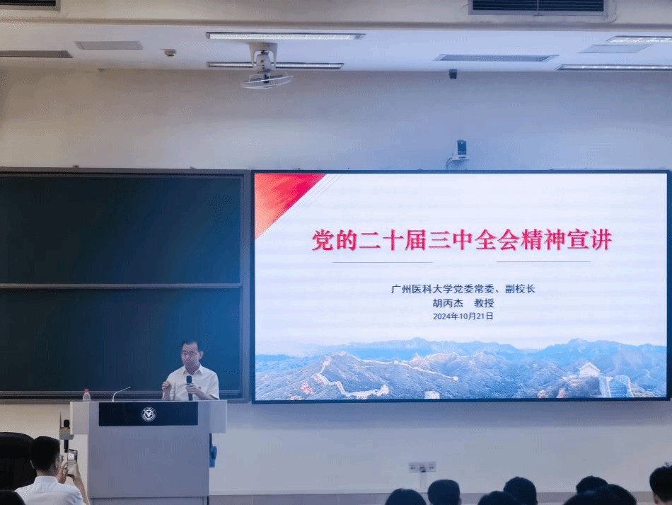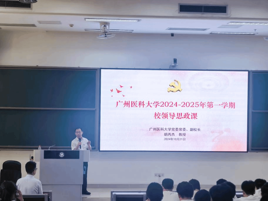 为深入学习贯彻党的二十届三中全会精神,推动社会主义文化强国建设,学校党委常委、副校长胡丙杰教授于2024年10月21日下午在番禺校区A3-106课室为博彩网站推荐2023级预防医学本科学生带来了一堂主题鲜明、内容丰富的思政课。