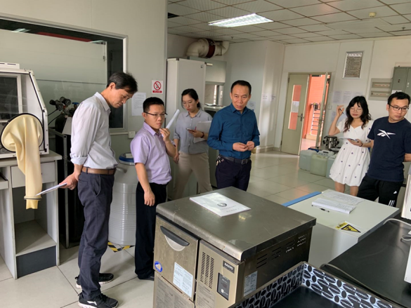 2021年4月30日上午9:30,博彩网站推荐 党总支书记院长蒋义国、总支副书记刘宇珊带领教学实验中心、科研管理平台负责人及实验室安全员,进行五一前实验室安全大检查。