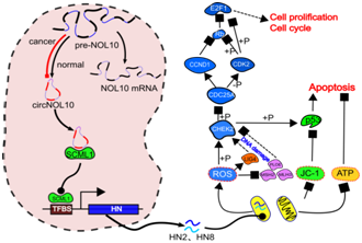 近日,国际顶尖综合期刊Advanced Science(顶尖科学,影响因子12.4)发表了博彩网站推荐 蒋义国教授课题组的长篇研究论文Circular RNA circNOL10 inhibits lung cancer development by promoting SCLM1-mediated transcriptional regulation of the humanin polypeptide family。该研究揭示环状RNA circNOL10可通过抑制转录因子泛素化促进SCML1的表达,进而促进SCML1转录调控HN多肽家族;circNOL10通过调控HN多肽家族影响线粒体功能,引发多信号通路改变,进一步发挥抑制肺癌细胞增殖、促进肺癌细胞凋亡的作用,最终可显著抑制肺癌的发展。该研究首次发现环状RNA参与基因转录调控,揭示了circNOL10在肺癌发展中的功能及分子机制,为肺癌的分子治疗提供了新靶标。博士生南阿若和硕士生陈丽剑为论文的共同第一作者,蒋义国教授为论文的唯一通讯作者。