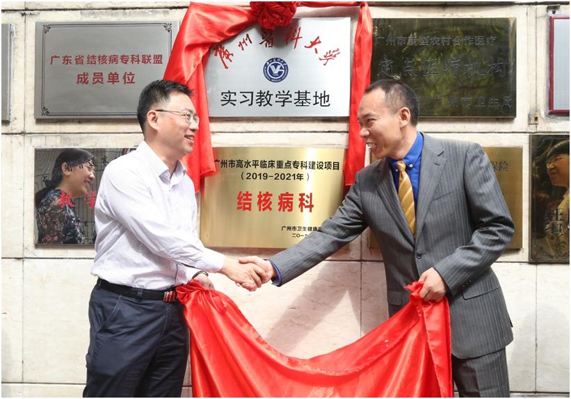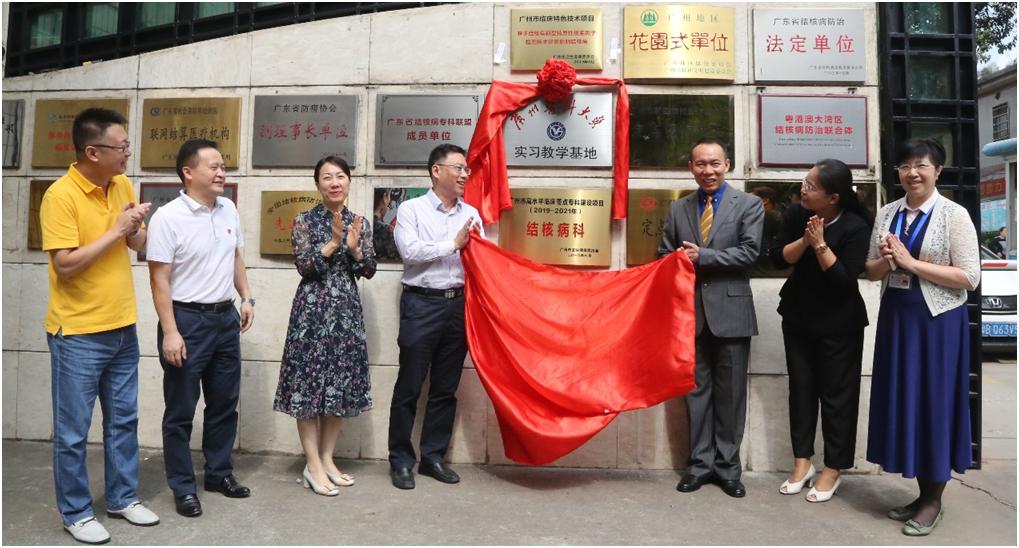 2019年11月12日上午,博彩网站推荐与广州市胸科医院在胸科医院举行了预防医学系“实习教学基地”揭牌仪式。广州市卫健委科教处刘华玲处长,博彩网站推荐 蒋义国院长、杨巧媛副院长、学生办何少群主任与预防医学系及院教学办教师一行5人,以及胸科医院刘建雄院长、张言斌副书记、李铁刚副院长、李昕洁副院长及相关科室负责人出席了揭牌仪式。
