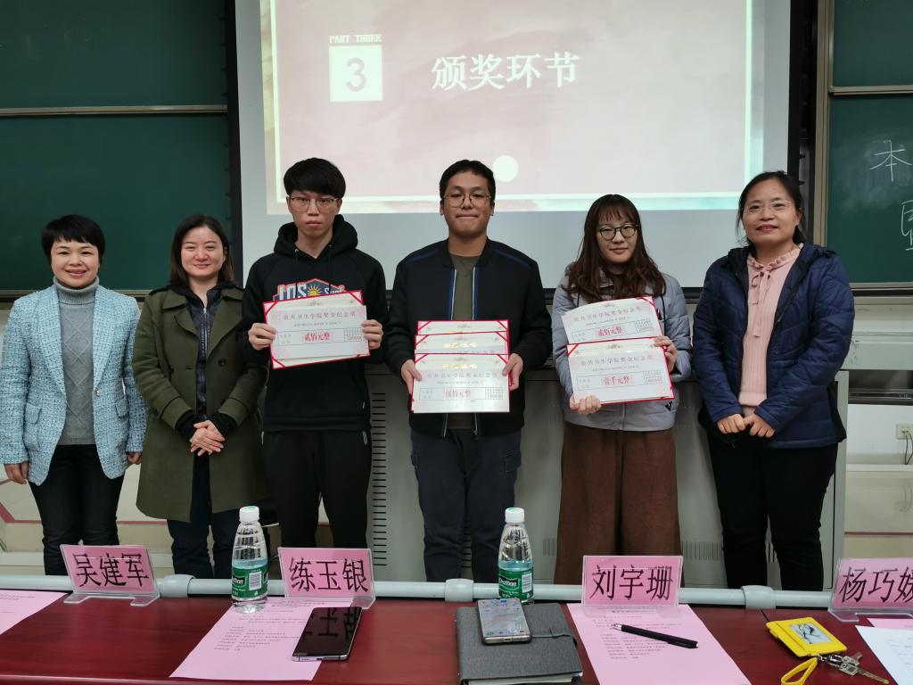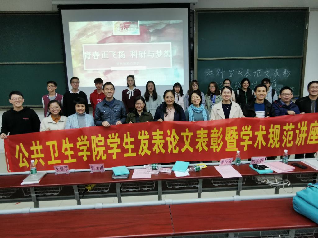 12月5日晚,博彩网站推荐本科生发表论文表彰暨学术规范讲座在番禺校区B1-101举行,杨巧媛副院长、刘宇珊副书记、预防医学系副主任练玉银等出席活动。根据《博彩网站推荐 本科生发表论文奖励办法(试行)》(广医大公卫〔2019〕14号)有关规定,宋玮琦、萧志昊和黄练杰三位同学在校期间发表的6篇科研论文受到表彰,博彩网站推荐 领导为获奖同学颁发了优秀论文证书,颁奖结束后三位同学分别结合自身科研经历分享了本科阶段开展科研工作的苦与乐,就如何加入研究团队、申报学生科研课题及论文写作等介绍了宝贵经验。