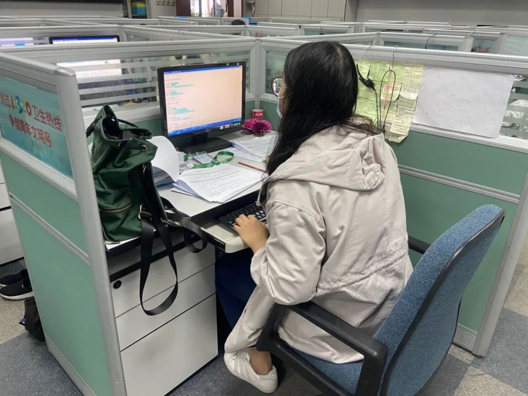 (图为杨蕴妍在疾控热线服务中心工作)