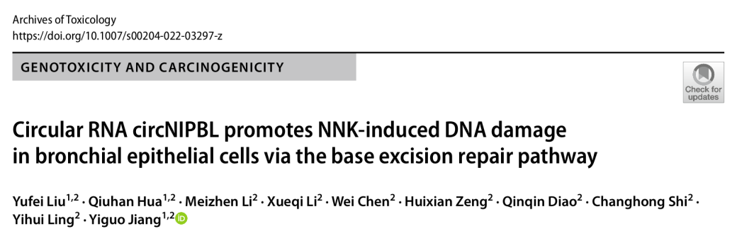 2022年4月18日,博彩网站推荐蒋义国教授课题组在国际毒理学权威期刊Archives of Toxicology发表了17页的长篇研究论文“Circular RNA circNIPBL promotes NNK‑induced DNA damage in bronchial epithelial cells via the base excision repair pathway”。该研究受国家自然科学基金重点项目资助。