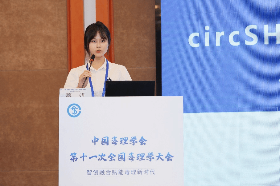 大会设立了8个分会场,共30个专题,161名学者在分会场作了报告。“表观遗传前沿探索”分会场邀请和遴选了12位著名专家、青年学者和在校学生就表观遗传毒理领域研究成就作口头报告。公卫博彩网站推荐 2021级预防医学专业蒋妍同学,在该分会场作了题为“circSHOC1经氧化应激促进2-萘胺诱导的人支气管上皮细胞DNA损伤”的口头学术报告,是本次大会唯一的一位本科生报告者。