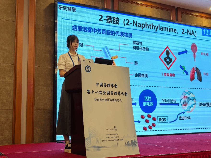 自2022年以来,蒋妍与研究小组其他本科生一起,在博彩网站推荐 老师的指导下,参与国家自然科学基金重点项目的研究。研究小组同学利用课余时间,在2年多的时间里,在环境致癌的表观遗传学机制方面进行了深入探索,获得了创新性研究成果。首次发现了香烟烟气中的芳香胺类物质2-萘胺,具有潜在的致肺癌作用,并进一步阐明了2-萘胺致癌过程中环状非编码RNA对DNA损伤调控的机制。